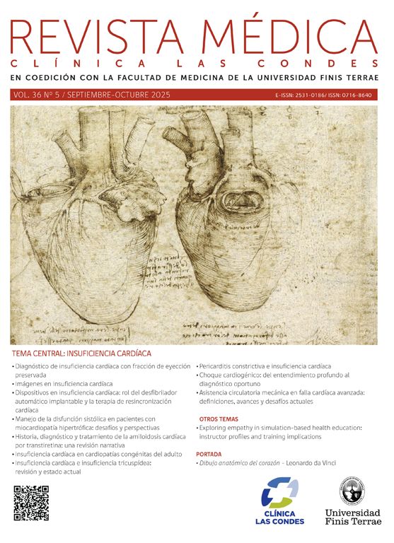 La Revista Médica Clínica Las Condes (RMCLC) es la principal plataforma de difusión científica de Clínica Las Condes, con publicaciones bimestrales que abordan una amplia gama de especialidades médicas. Acepta artículos de revisión, actualizaciones, experiencias clínicas,  investigaciones originales y casos clínicos, siendo un recurso esencial para la actualización continua de los profesionales de la salud. Con un riguroso proceso de revisión por pares y la colaboración de autores calificados a nivel nacional e internacional, la RMCLC se consolida como una herramienta clave para la docencia y el estudio en el ámbito de la medicina.